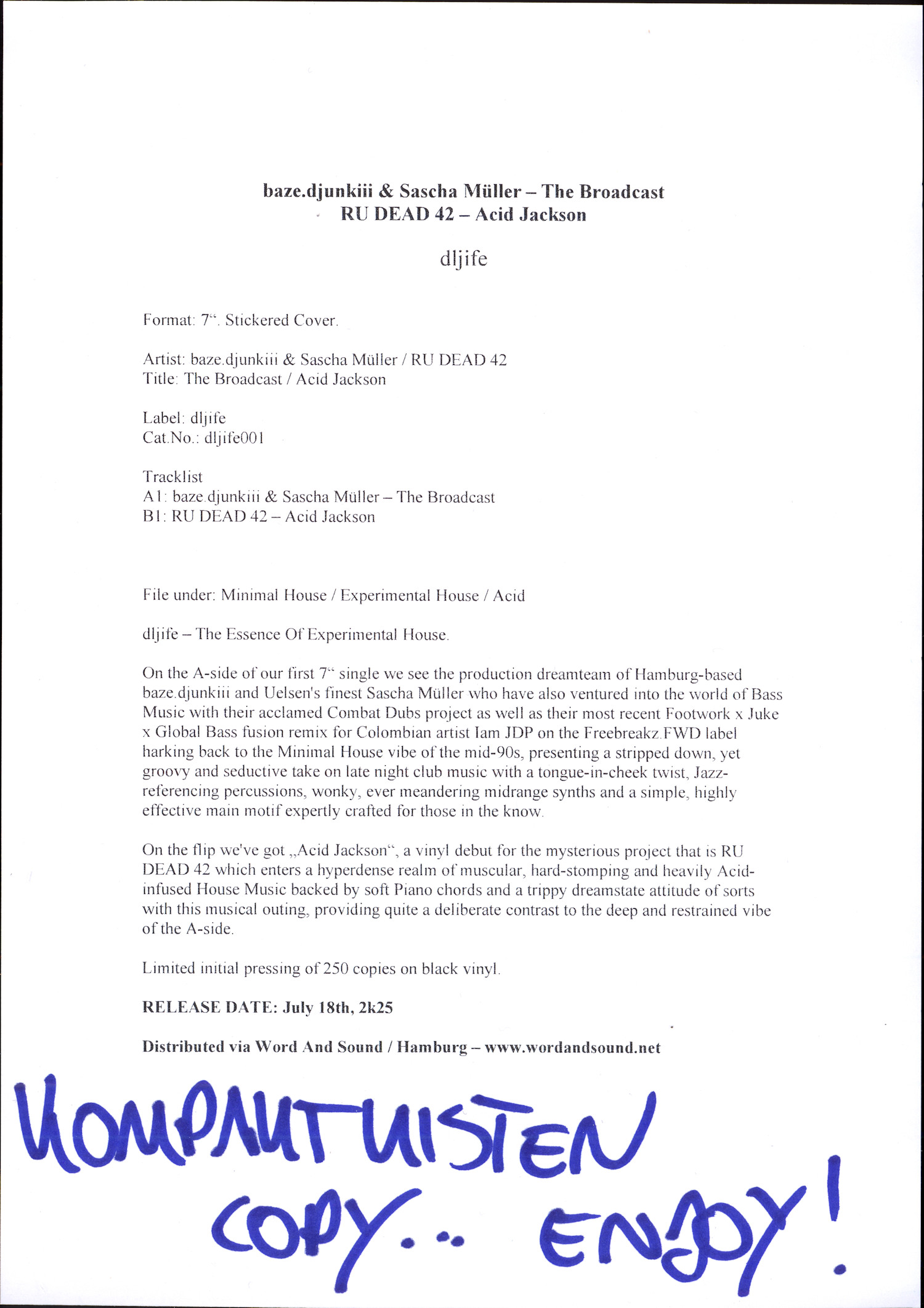 . baze.djunkiii & sacha müller - the broadcast / ru dead 42 - acid jackson .