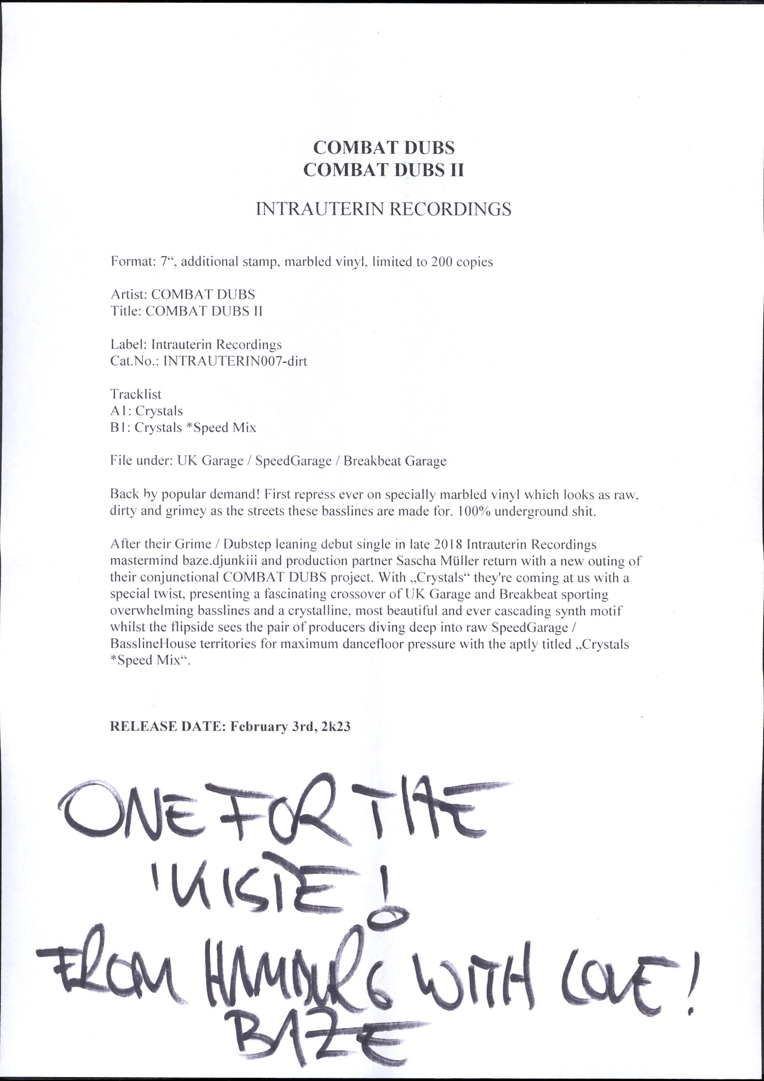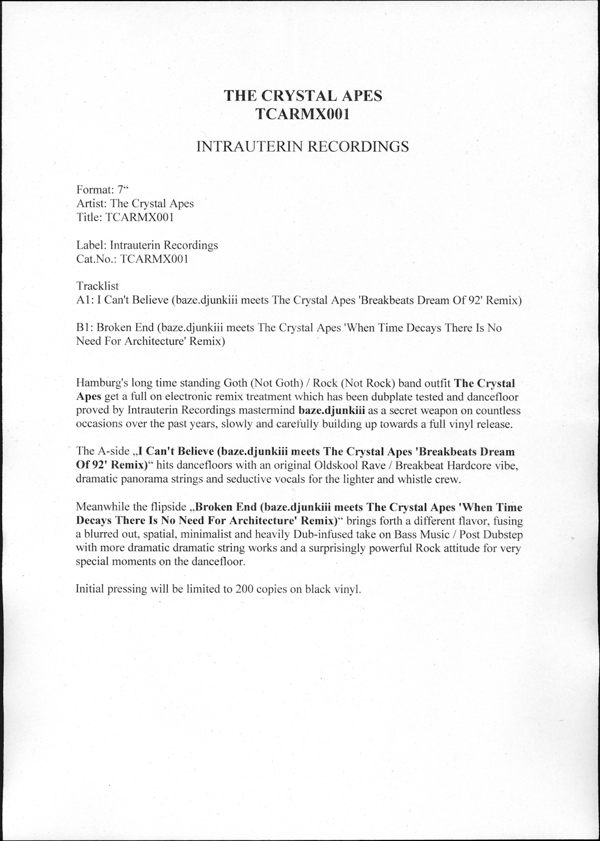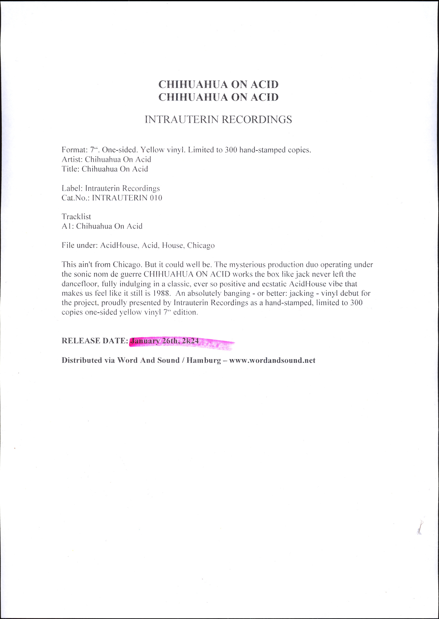(22.11.2019 intrauterin recordings tcarmx001) 7" stamped whitelabel