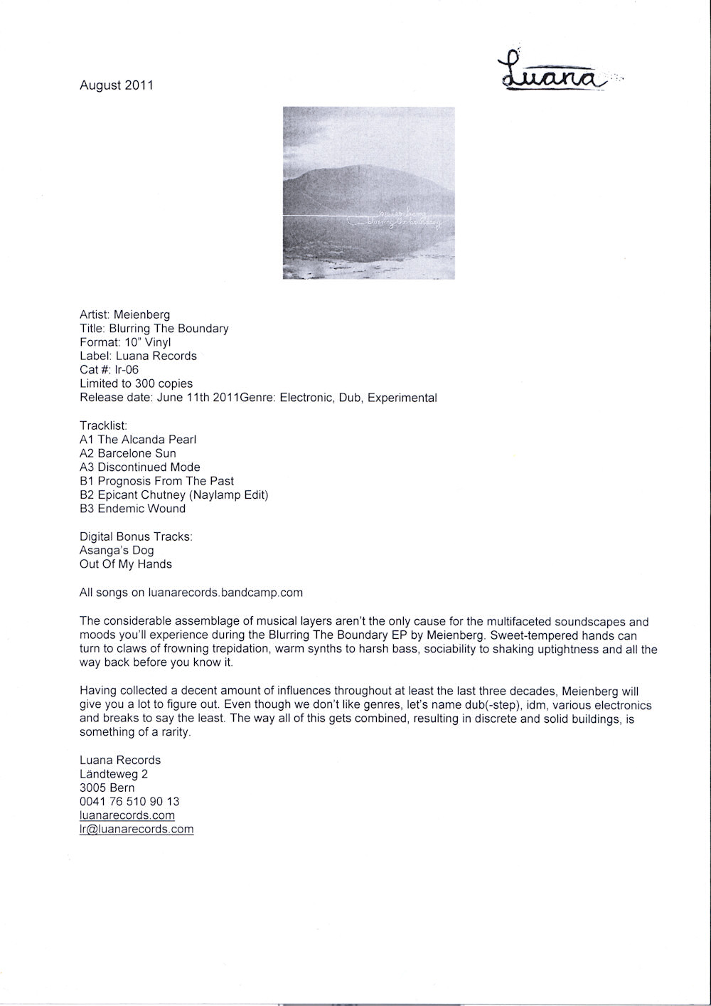 (06.2011 luana records lr-06) 10" a1 the alcvanda perl a2 barcelone sun a3 discontinued mode b1 prognosis from the past b2 epicant chutney (naylamp edit) b3 endemic wound digital bonus tracks: asanga's dog out of my handltd.300 |