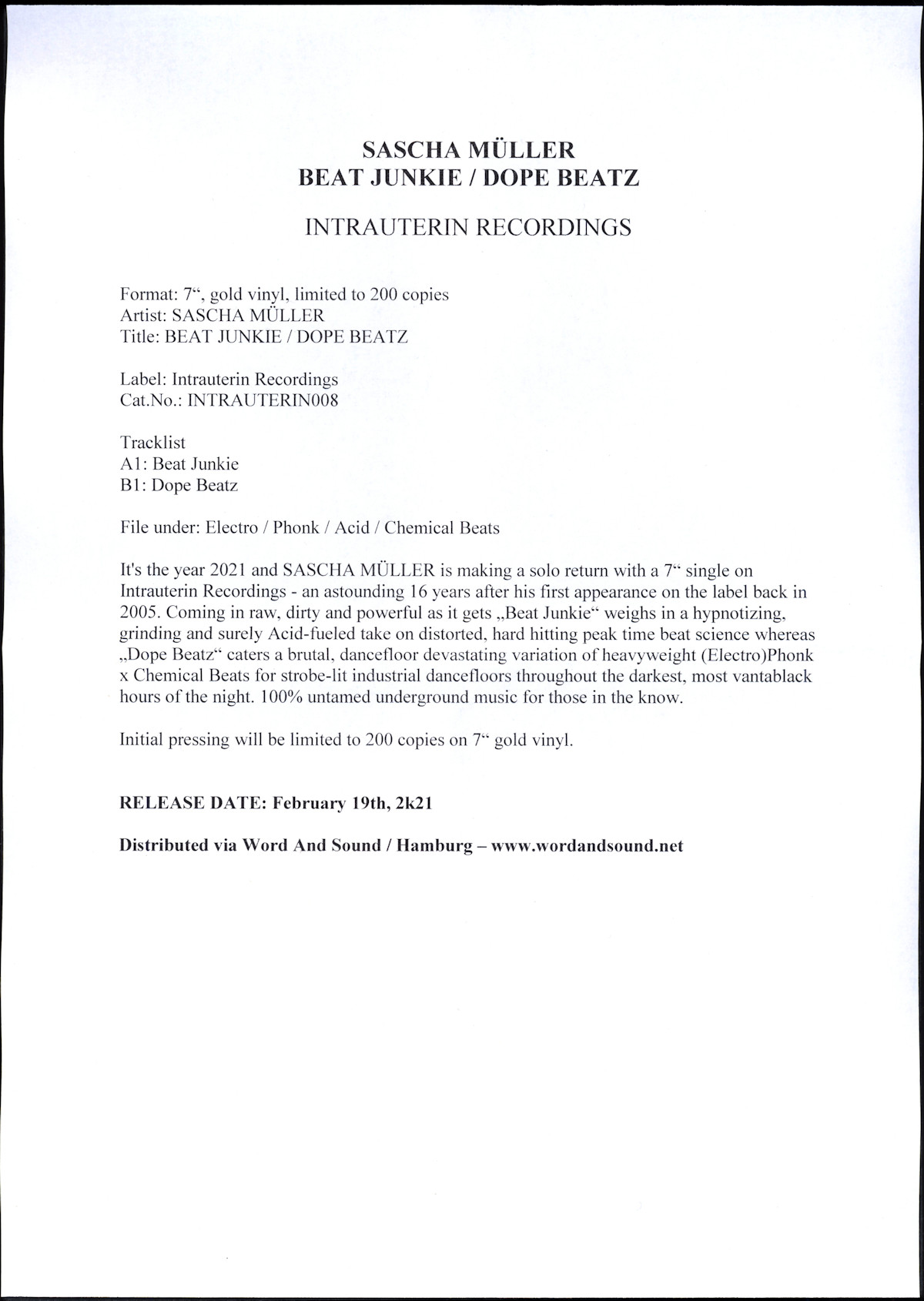 limited edition of 200 copies. hand-stamped 7" whitelabel on gold vinyl |