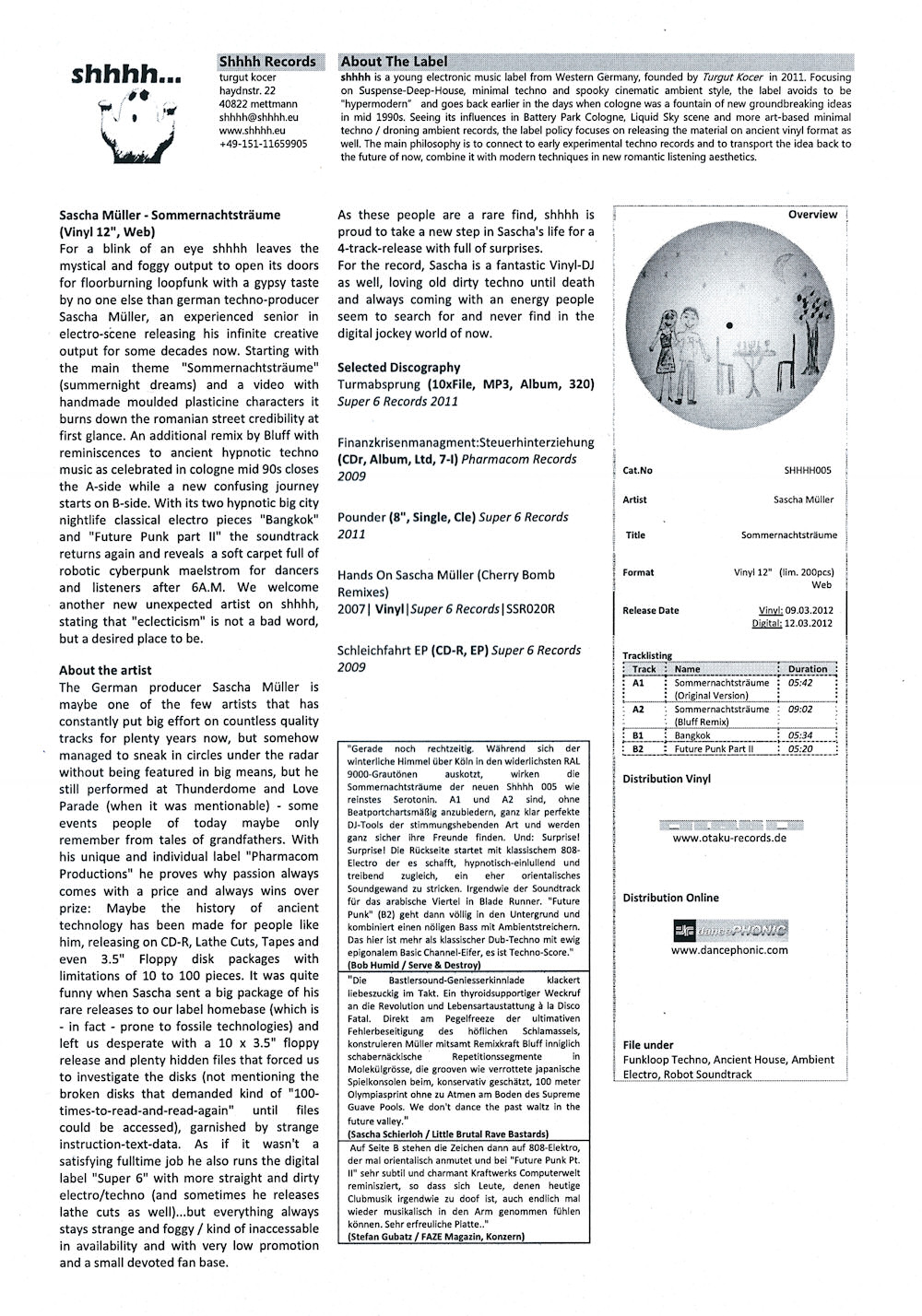 (09.03.2012 shhhh... records shhhh005 / 0608938865687) 12" white vinyl a1 sommernachtsträume (original version) 05:42 a2 sommernachtsträume (bluff remix) 09:02 b1 bangkok 05:34 b2 future funk part ii 05:20 |
