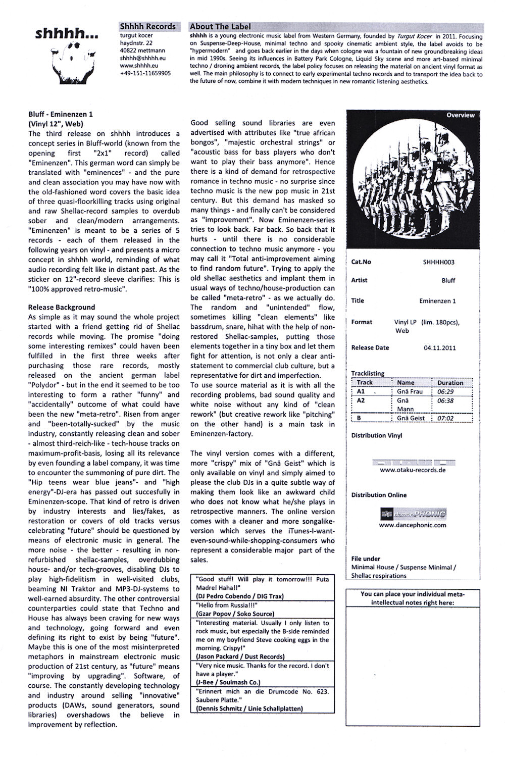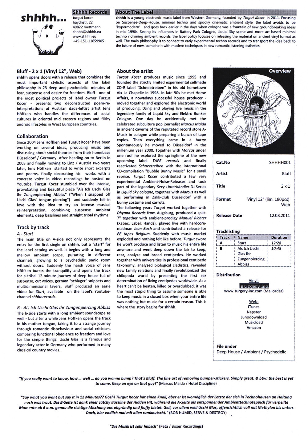 (12.08.2011 shhhh... records shhhh001 / 0609613619083) 12"