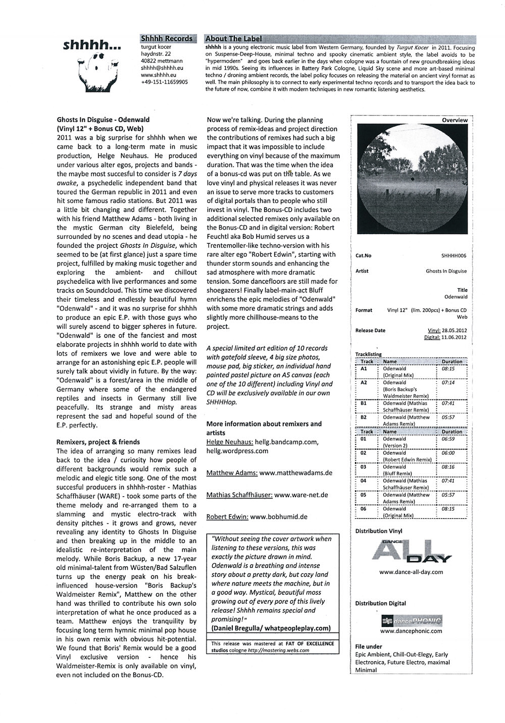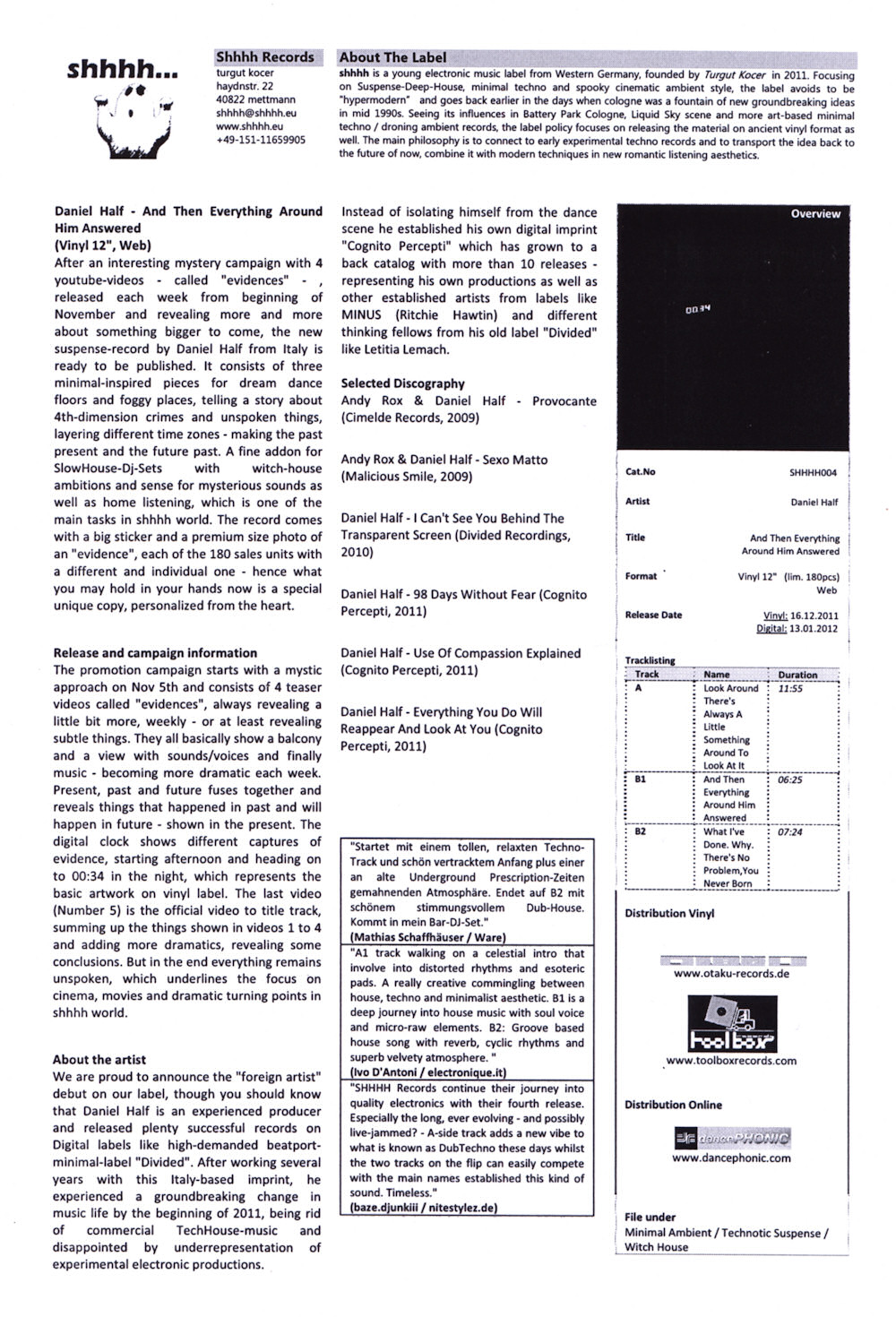 (30.09.2011 shhhh... records shhhh002 / 0608938865656) 12"