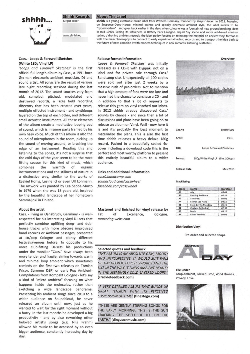 (04.2013 shhhh... records shhhh009) 12" white vinyl + mc
