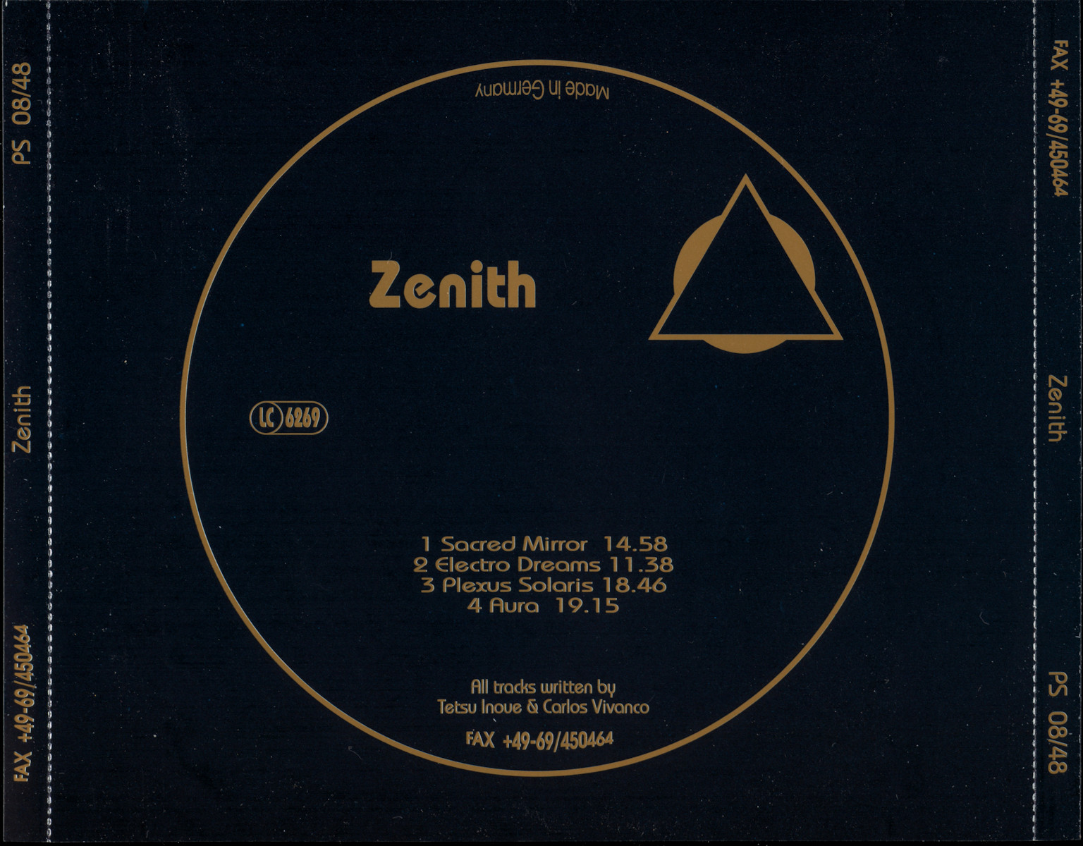 (1994/09.2016 psychonavigation records psy121 / 611138661980) cd 01 00:02:00 14:59:57 sacred mirror 02 15:01:57 11:40:49 electro dreams 03 26:42:31 18:47:24 plexus solaris 04 45:29:55 19:15:51 aura cd 64:43:31written by carlos vivanco, tetsu inoue |
