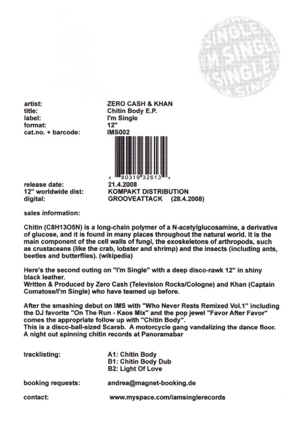 (04.2008 i'm single ims002) 12" a1 chitin body b1 chitin body dub b2 light of love ![]() ![]() |