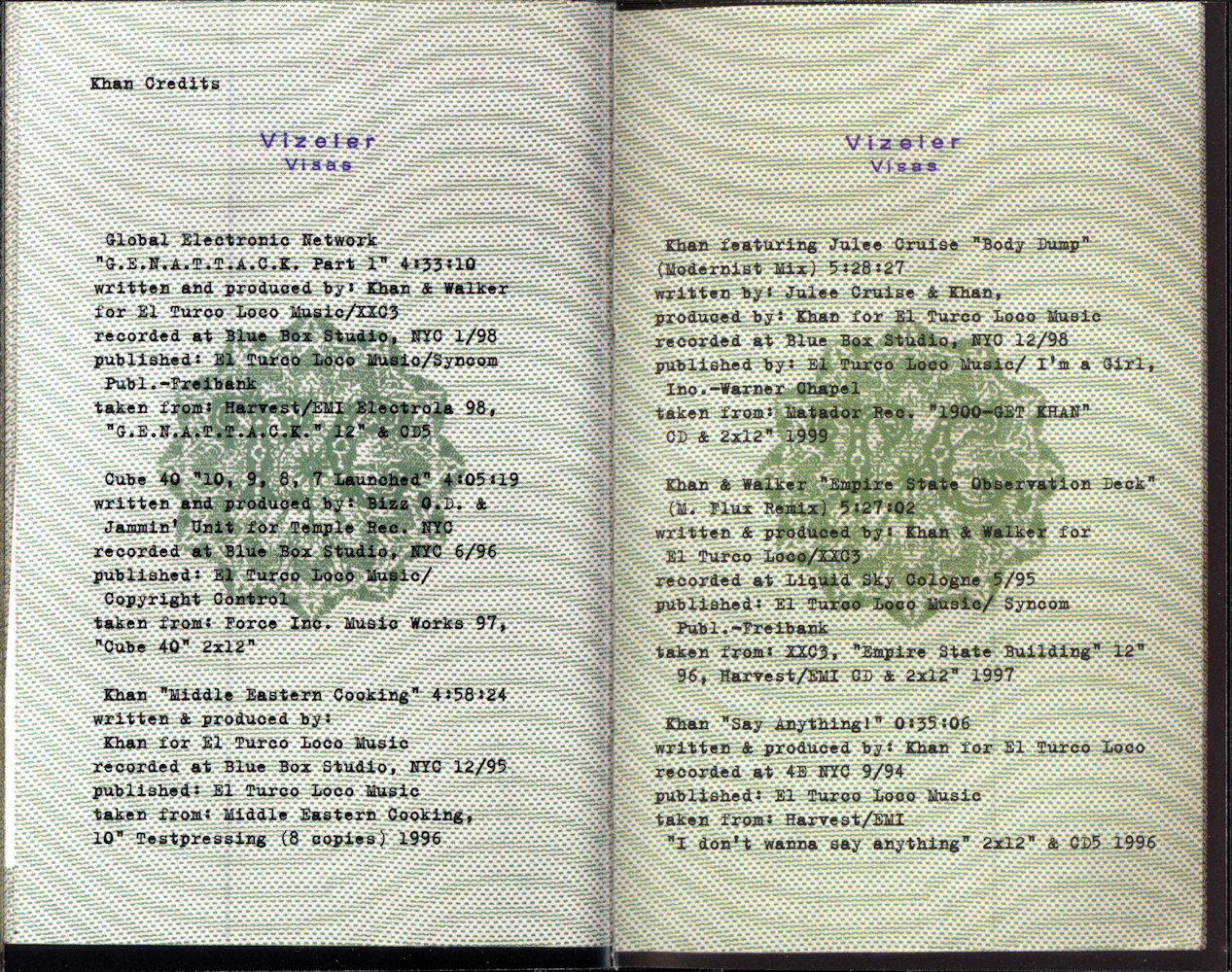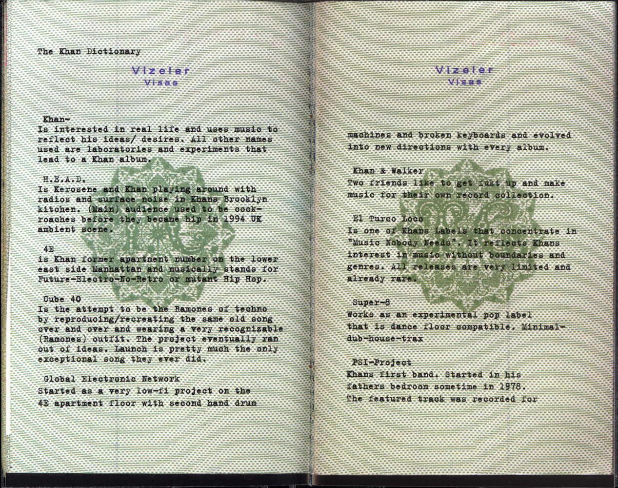 (1999 matador ole338-2v) cd promo 01 00:02:00 04:34:25 global electronic network - g.e.n.a.t.t.a.c.k.z. part 1 02 04:36:25 04:06:45 cube 40 - 10,9,8,7 launched 03 08:42:70 04:59:55 khan - middle eastern cooking 04 13:42:50 05:28:68 khan featuring julee cruise - body dump (modernist mix) 05 19:11:43 05:25:06 khan & walker - empire state observation desk (m. flux remix) 06 24:36:49 00:35:15 khan - say anything! 07 25:11:64 05:41:72 h.e.a.d. - eeffss number 4 08 30:53:61 06:40:18 global electronic network - time square - no time 09 37:34:04 03:53:11 black sabbath riot - suck blood 10 41:27:15 03:44:25 mass-turbator - i put a smile on your face 11 45:11:40 05:47:43 khan - super-8.3 12 50:59:08 05:51:72 4e - career councelor 13 56:51:05 04:38:14 4e - stay fresh 14 61:29:19 03:37:17 khan - super-8.5 15 65:06:36 02:34:50 psi-project - we're fuckt in the head cd 67:39:11you might think you know everything there is worth knowing about the ultra-prolific electronic pioneer khan aka can oral. and perhaps you do, but why take a chance? this compilation ties the noted composer/musician/producer's styles and sounds together in such a way that his genius is undeniable. to our faces, that is. dbl lp cd in stores november 9, 1999. |