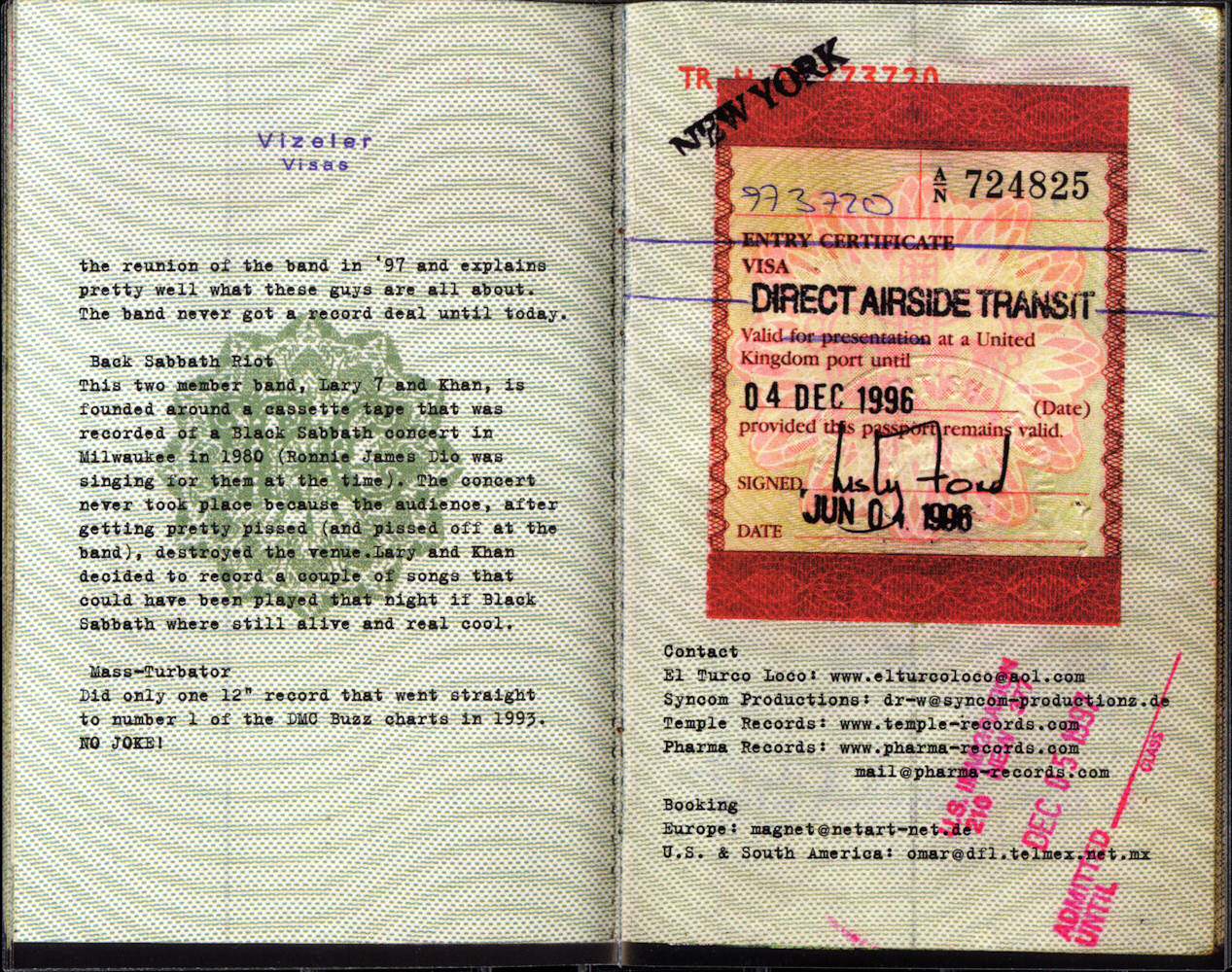 (2000 matador ole436-1p) 12" promo 1a julee cruise & ingy klementz / cube 40 - passport to the unknown (launched) music by: jammin' unit / kahn. lyrics & vocals by: julee cruize & ingy klementz. 1b solex / super-8.5 - 8.5 aux coque royale (s-8.5) music by: khan. lyrics & vocals by: solex. 2a blake / global electronic network - g.e.n.a.t.t.a.c.k.z.b.l.a.k.e. music by: khan & walker. lyrics & vocals by: blake. 2b tara delong / black sabbath riot - blood on the passport (suck blood) music by: lary 7 & khan. lyrics & vocals by: tara delongthis records features 'karaoked' and remixed versions of songs from the album 'passport' ole-338 dbl lp / cd in stores january 25, 2000 ![]() ![]() |