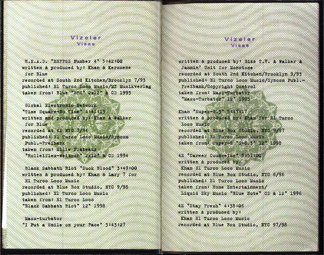 (1999 matador ole 338-2 / 7 44861 03382 0) cd 01 00:02:00 04:34:25 global electronic network - g.e.n.a.t.t.a.c.k.z. part 1 02 04:36:25 04:06:45 cube 40 - 10,9,8,7 launched 03 08:42:70 04:59:55 khan - middle eastern cooking 04 13:42:50 05:28:68 khan featuring julee cruise - body dump (modernist mix) 05 19:11:43 05:25:06 khan & walker - empire state observation desk (m. flux remix) 06 24:36:49 00:35:15 khan - say anything! 07 25:11:64 05:41:72 h.e.a.d. - eeffss number 4 08 30:53:61 06:40:18 global electronic network - time square - no time 09 37:34:04 03:53:11 black sabbath riot - suck blood 10 41:27:15 03:44:25 mass-turbator - i put a smile on your face 11 45:11:40 05:47:43 khan - super-8.3 12 50:59:08 05:51:72 4e - career councelor 13 56:51:05 04:38:14 4e - stay fresh 14 61:29:19 03:37:17 khan - super-8.5 15 65:06:36 02:34:50 psi-project - we're fuckt in the head cd 67:39:11 |
